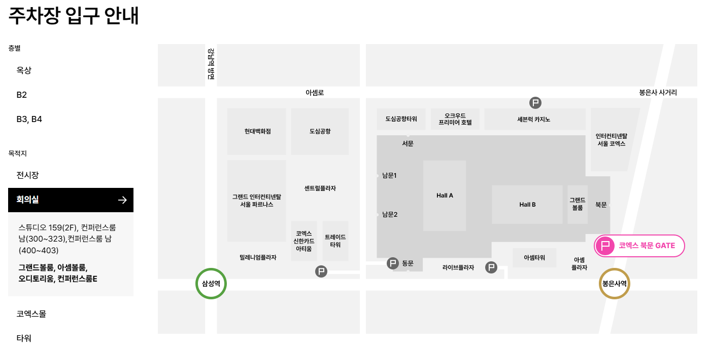 코엑스 주차장에 대한 보다 자세한 사항은 아래 코엑스 홈페이지에서 확인 부탁드립니다.